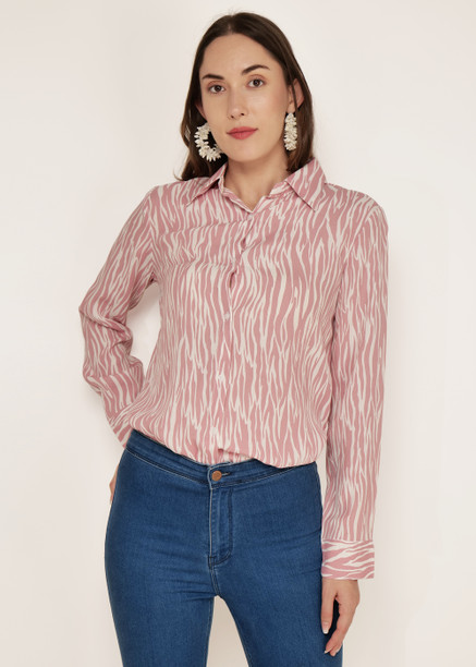 Women Oversized Fit Printed Lapel Collar Casual Shirt