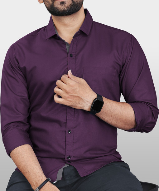 Men Regular Fit Solid Spread Collar Casual Shirt
