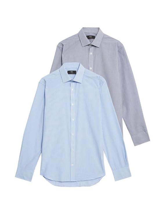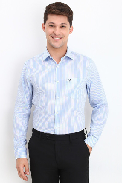 Men Slim Fit Striped Spread Collar Formal Shirt