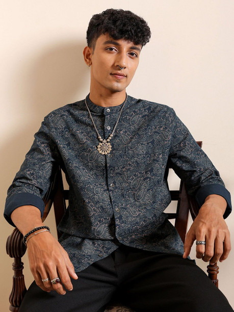 Men Slim Fit Printed Mandarin Collar Casual Shirt