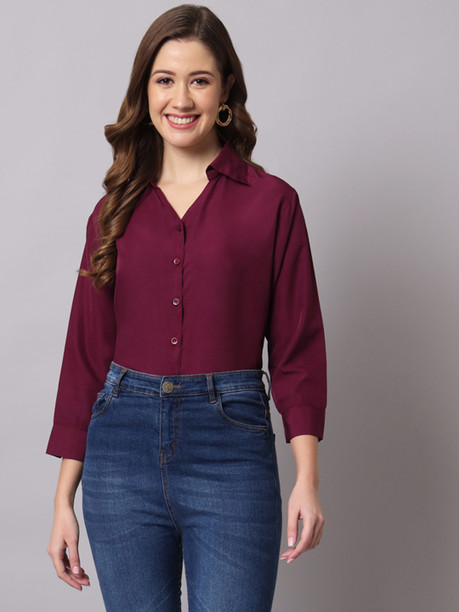 Women Regular Fit Solid Spread Collar Casual Shirt