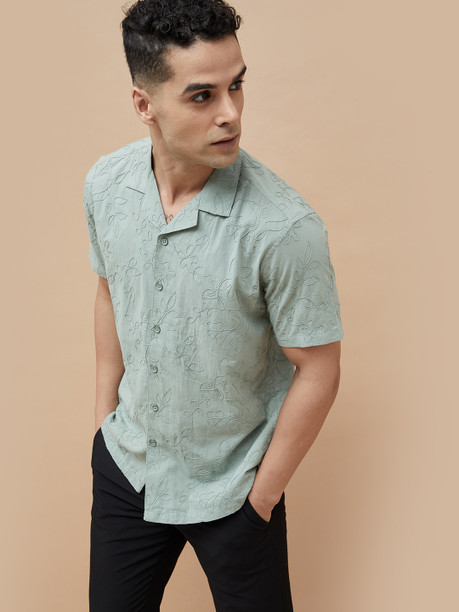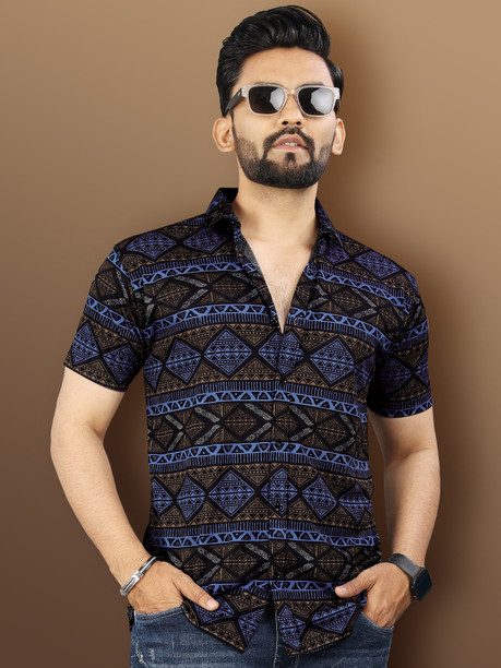 Men Regular Fit Printed Spread Collar Casual Shirt