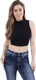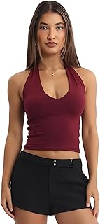Women’s Sleeveless Rib Knitted Cotton Racer Back Tank Tops Halter Neck Crop Tops - Available Sizes -XS, S, M,L,XL,2XL