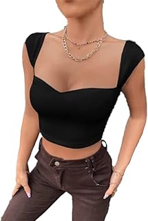 Solid Sweetheart Neck Short Sleeves Ribbed Crop Tops for Women