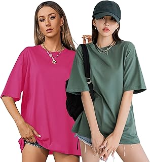 Women's Cotton Loose Casual Round Neck Solid, Drop Shoulder T-Shirt Pack of 2