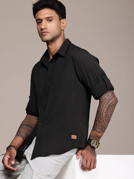 Men Comfort Fit Fit Self Design Spread Collar Casual Sh...