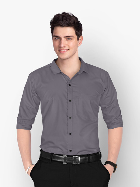 Men Regular Fit Solid Button Down Collar Formal Shirt