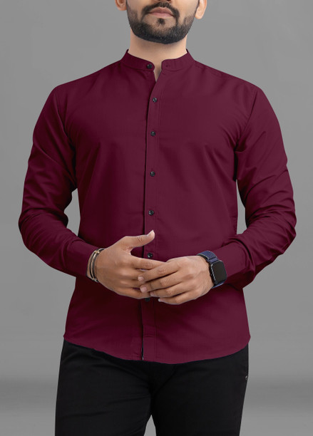 Men Regular Fit Solid Mandarin Collar Casual Shirt