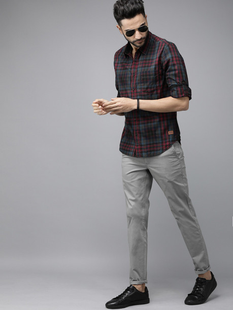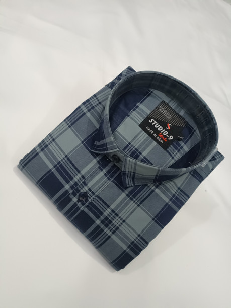 Men Regular Fit Checkered Spread Collar Casual Shirt