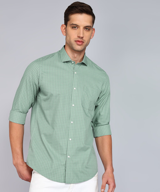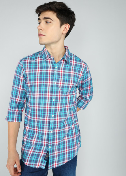 Men Slim Fit Checkered Spread Collar Casual Shirt