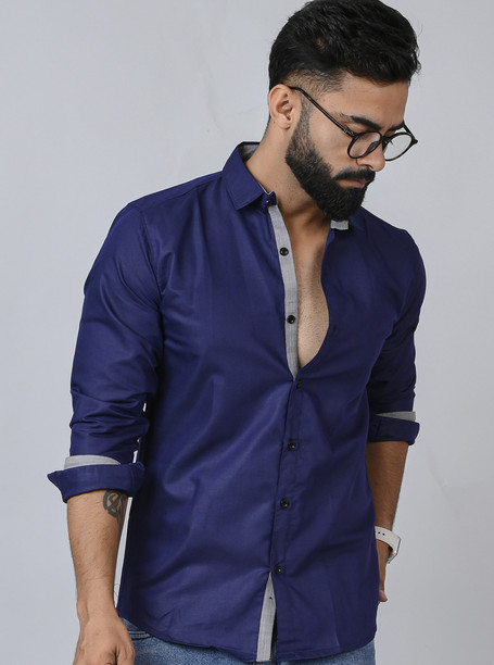 Men Slim Fit Solid Slim Collar Casual Shirt