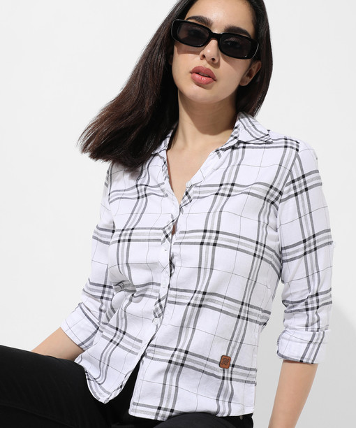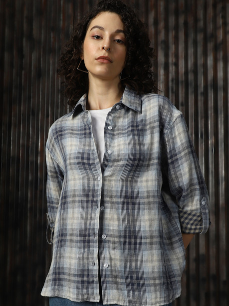 Women Boxy Fit Checkered Spread Collar Casual Shirt