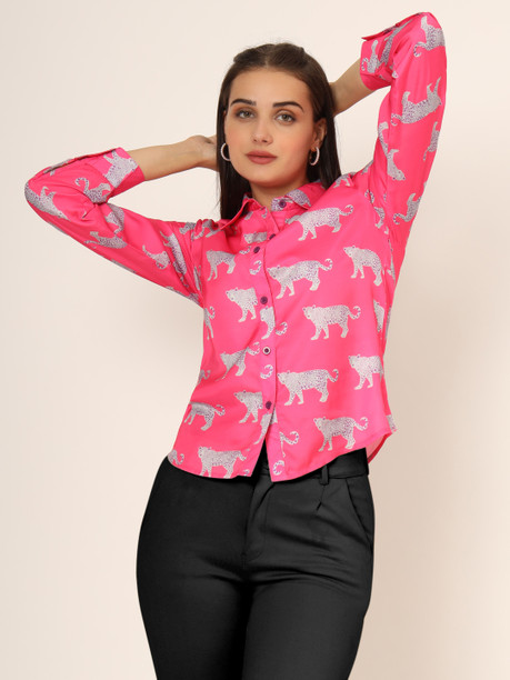 Women Regular Fit Printed Button Down Collar Casual Shi...