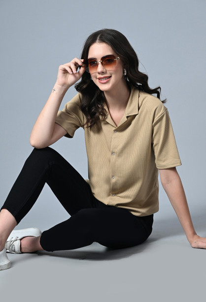 Women Regular Fit Solid Spread Collar Casual Shirt