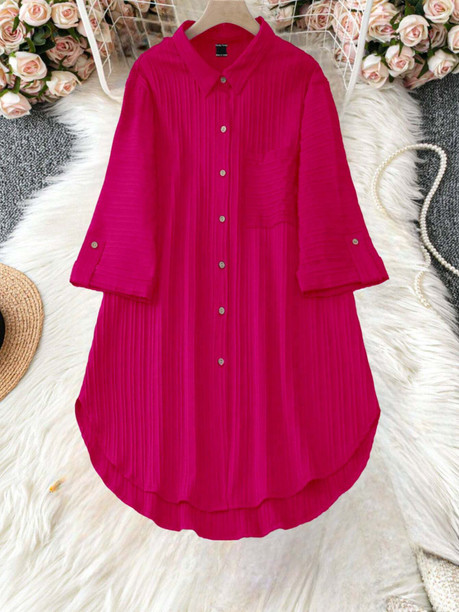 Women Regular Fit Solid Curved Collar Casual Shirt