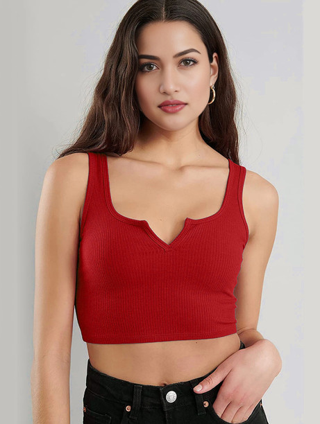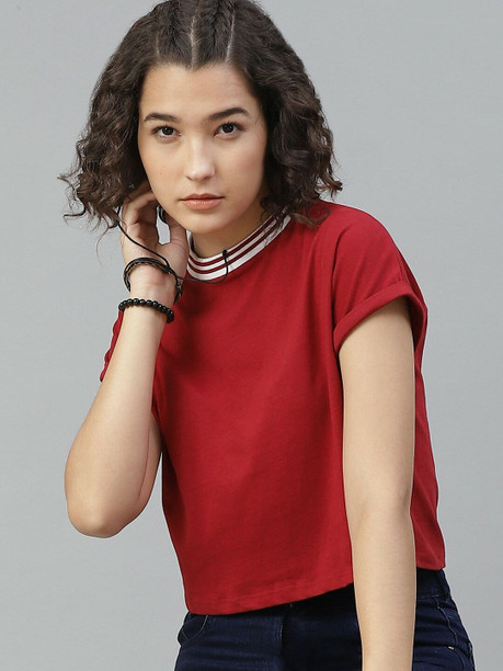 Women Solid Round Neck Pure Cotton Red T-Shirt