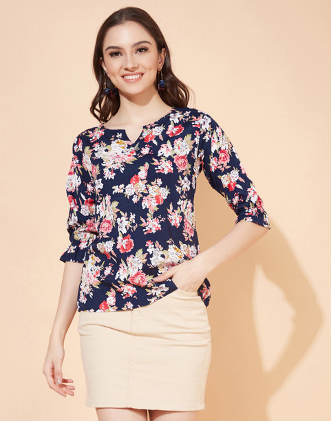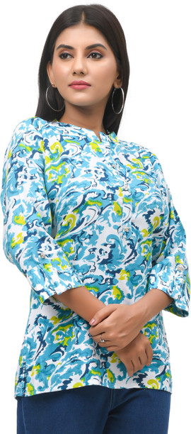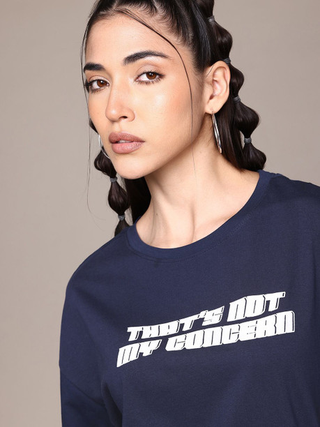 Women Printed Round Neck Pure Cotton Blue T-Shirt