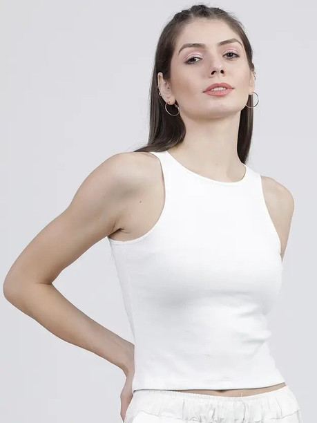 Women Solid Round Neck Pure Cotton White T-Shirt