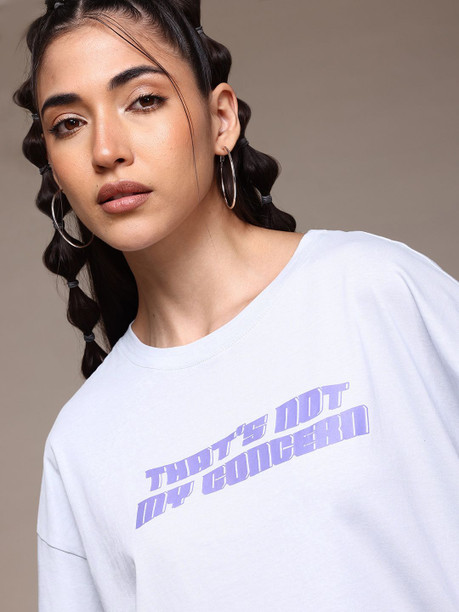 Women Printed Round Neck Pure Cotton White T-Shirt