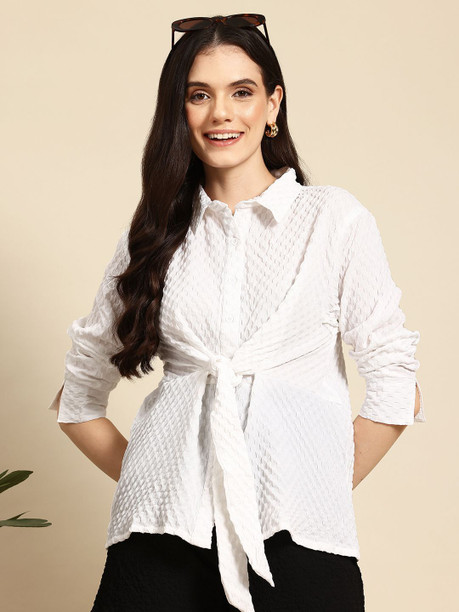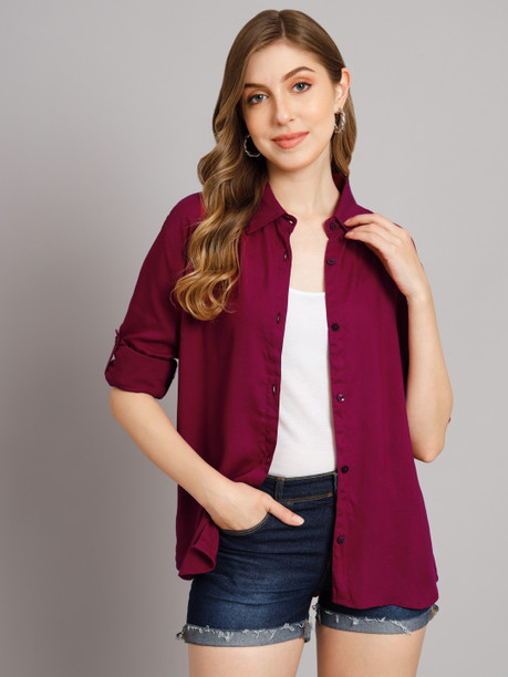 Women Regular Fit Solid Spread Collar Casual Shirt