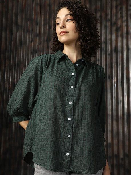 Women Regular Fit Checkered Spread Collar Casual Shirt