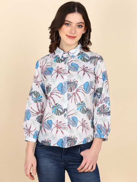 Women Oversized Fit Printed Lapel Collar Casual Shirt