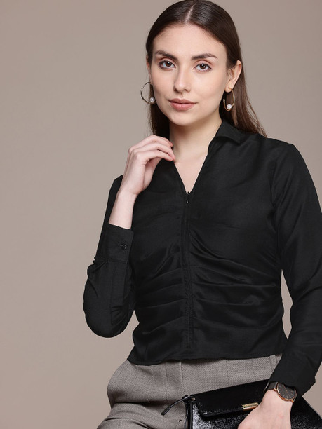 Women Regular Fit Solid Spread Collar Formal Shirt