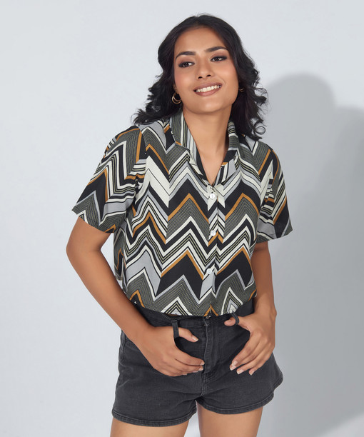 Women Boxy Fit Graphic Print Spread Collar Casual Shirt