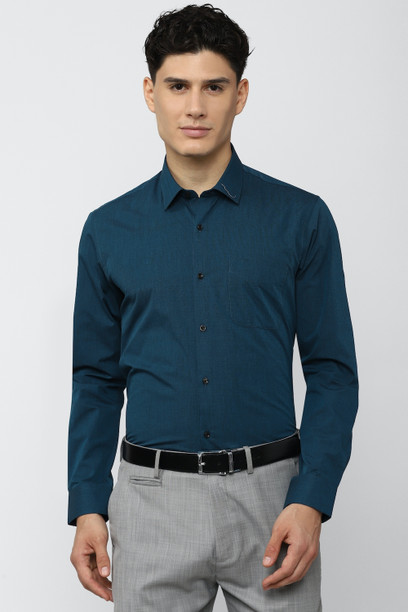 Men Regular Fit Solid Button Down Collar Formal Shirt
