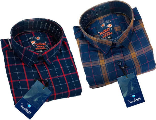 Men Regular Fit Checkered Slim Collar Casual Shirt
