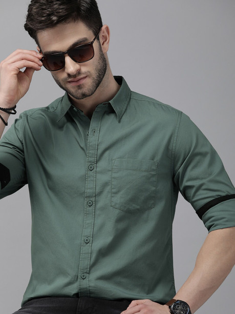 Men Regular Fit Solid Spread Collar Casual Shirt