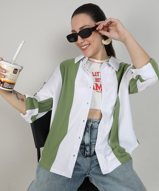 Women Regular Fit Striped Spread Collar Casual Shirt