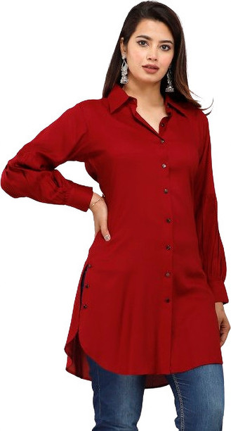 Women Regular Fit Solid Button Down Collar Casual Shirt