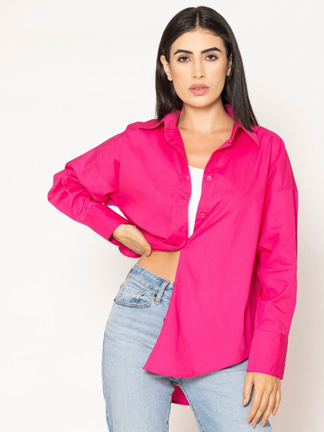 Women Boxy Fit Solid Spread Collar Casual Shirt