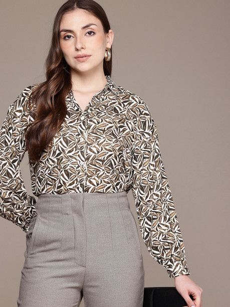 Women Regular Fit Printed Lapel Collar Formal Shirt