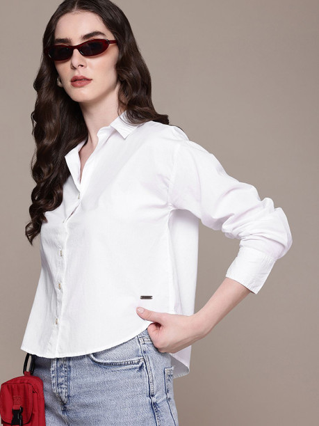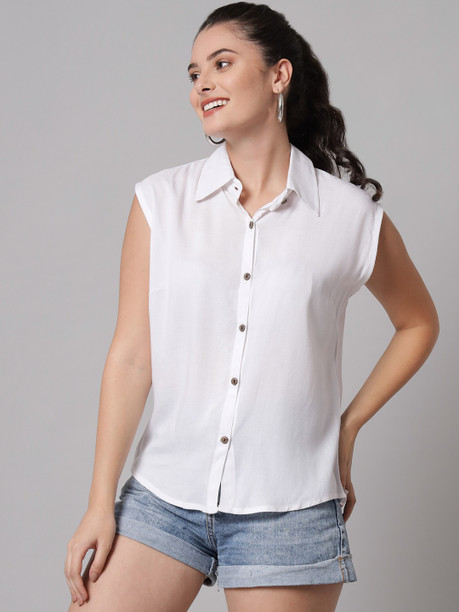 Women Regular Fit Solid Spread Collar Casual Shirt