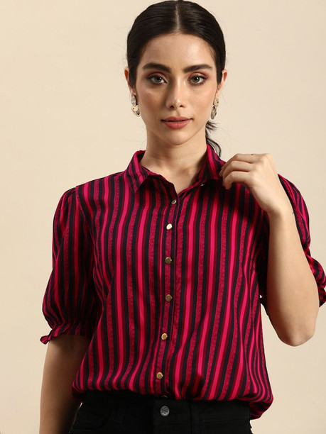 Women Regular Fit Striped Spread Collar Casual Shirt