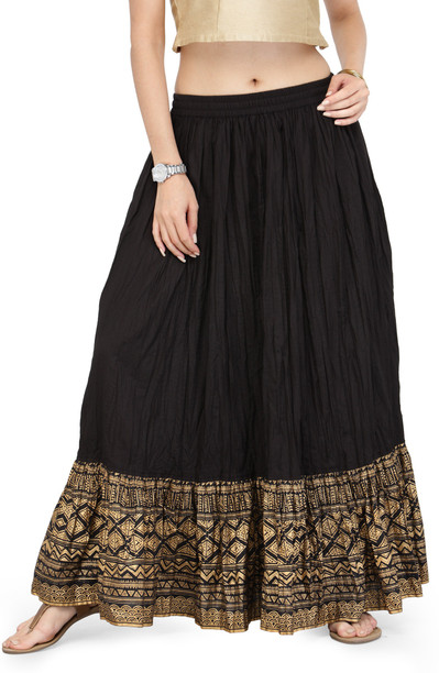Women Printed Flared Black Skirt