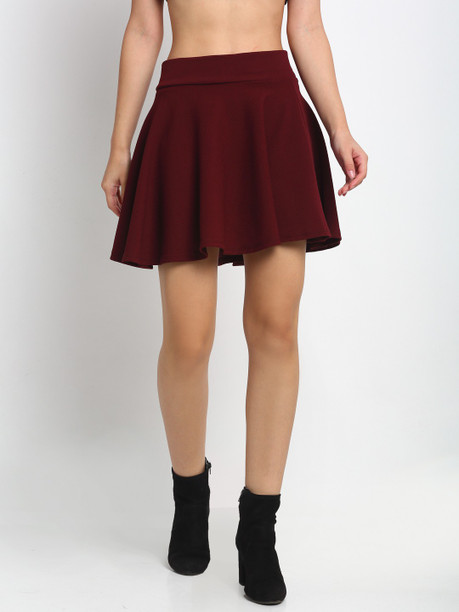 Women Solid Flared Maroon Skirt