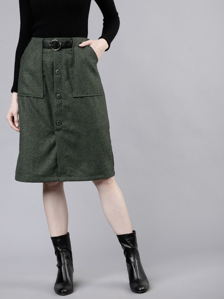 Women Solid Flared Dark Green Skirt