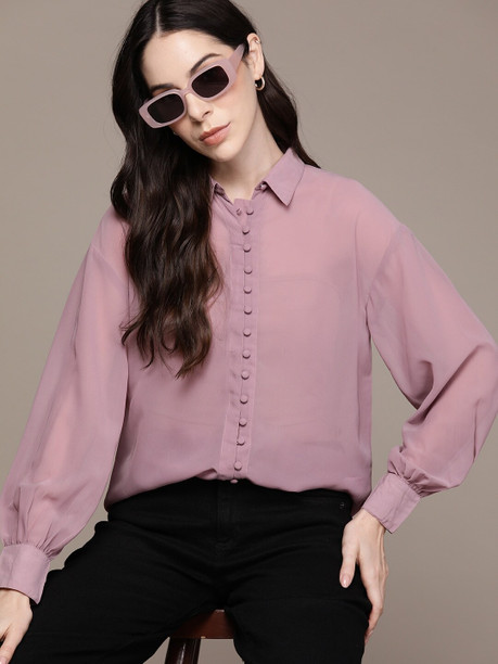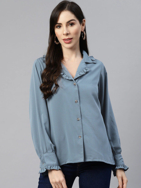 Women Regular Fit Solid Spread Collar Casual Shirt