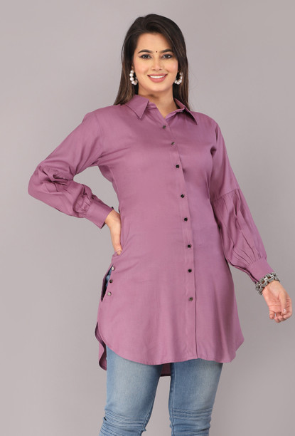 Women Regular Fit Solid Mandarin Collar Casual Shirt