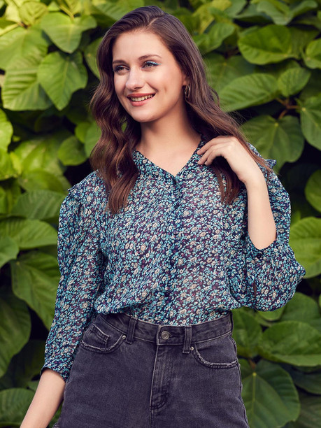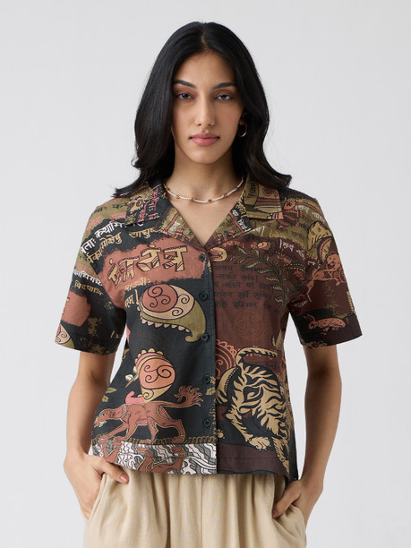 Women Boxy Fit Printed Lapel Collar Casual Shirt