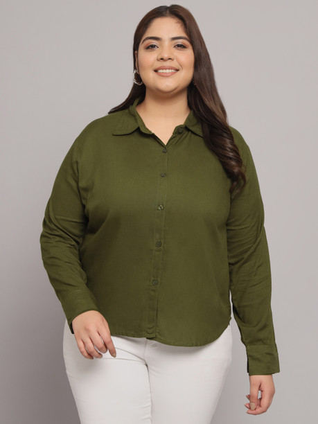 Women Regular Fit Solid Button Down Collar Casual Shirt