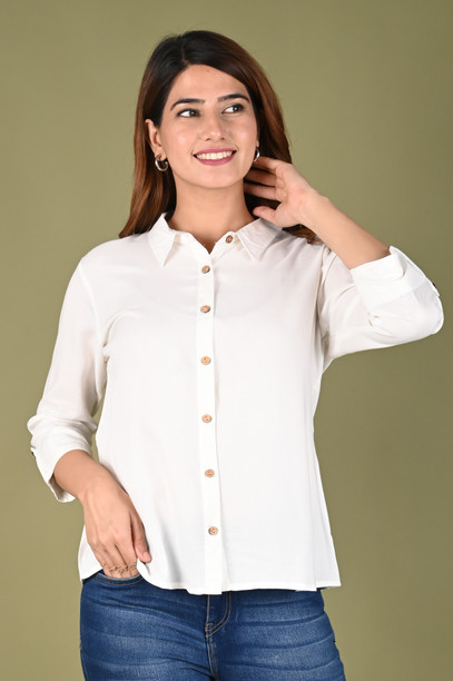 Women Regular Fit Solid Spread Collar Casual Shirt