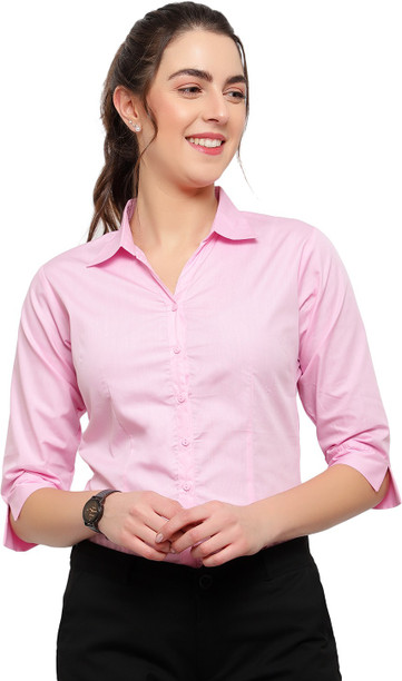 Women Slim Fit Solid Spread Collar Casual Shirt