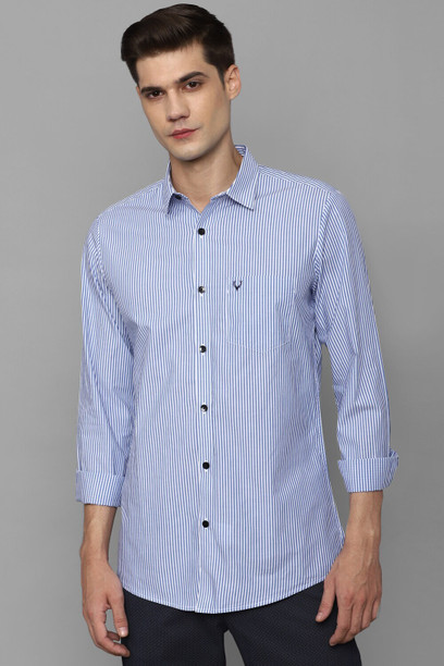 Men Slim Fit Striped Cut Away Collar Casual Shirt