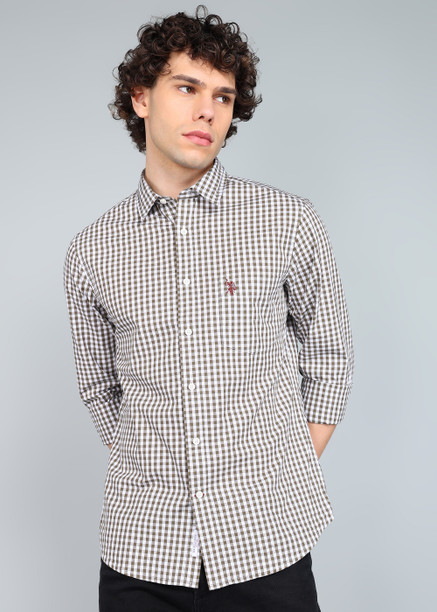 Men Regular Fit Checkered Cut Away Collar Casual Shirt