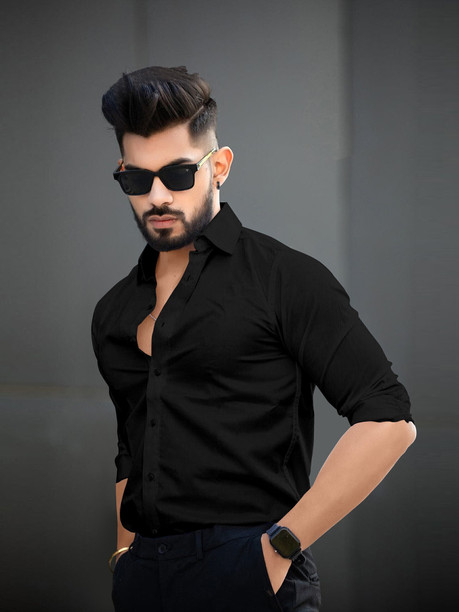 Men Regular Fit Solid Spread Collar Casual Shirt