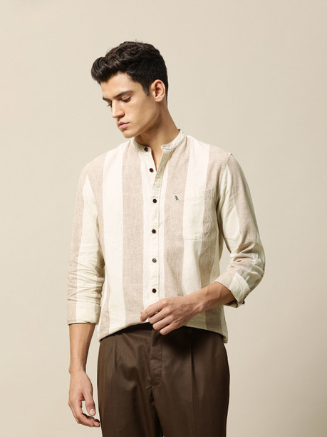 Men Tailored Fit Striped Mandarin Collar Casual Shirt
